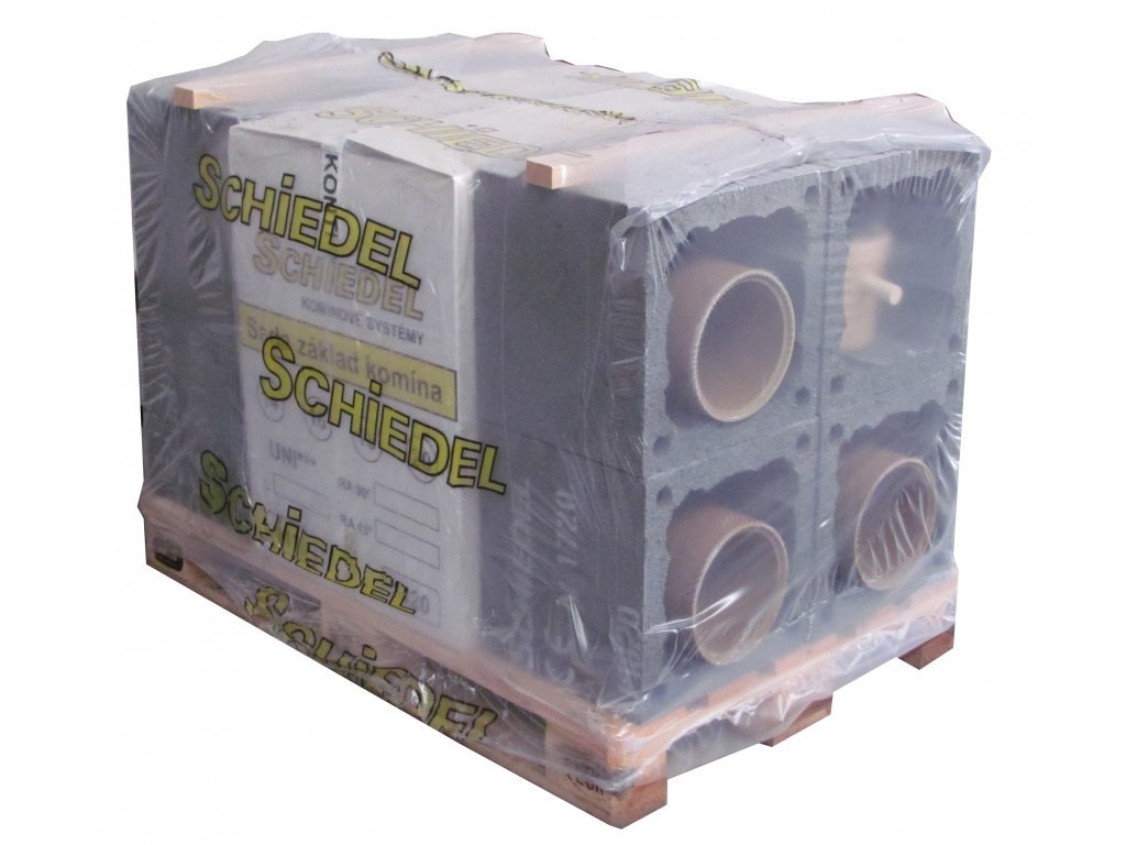Komínová sestava obsahuje: komínové vložky, komínové tvárnice, základní souprava, kónické vyústění, komínová vložka pro kouřovod 90°, krycí deska sklobetonová, komínová vložka pro dvířka, izolační rohože.