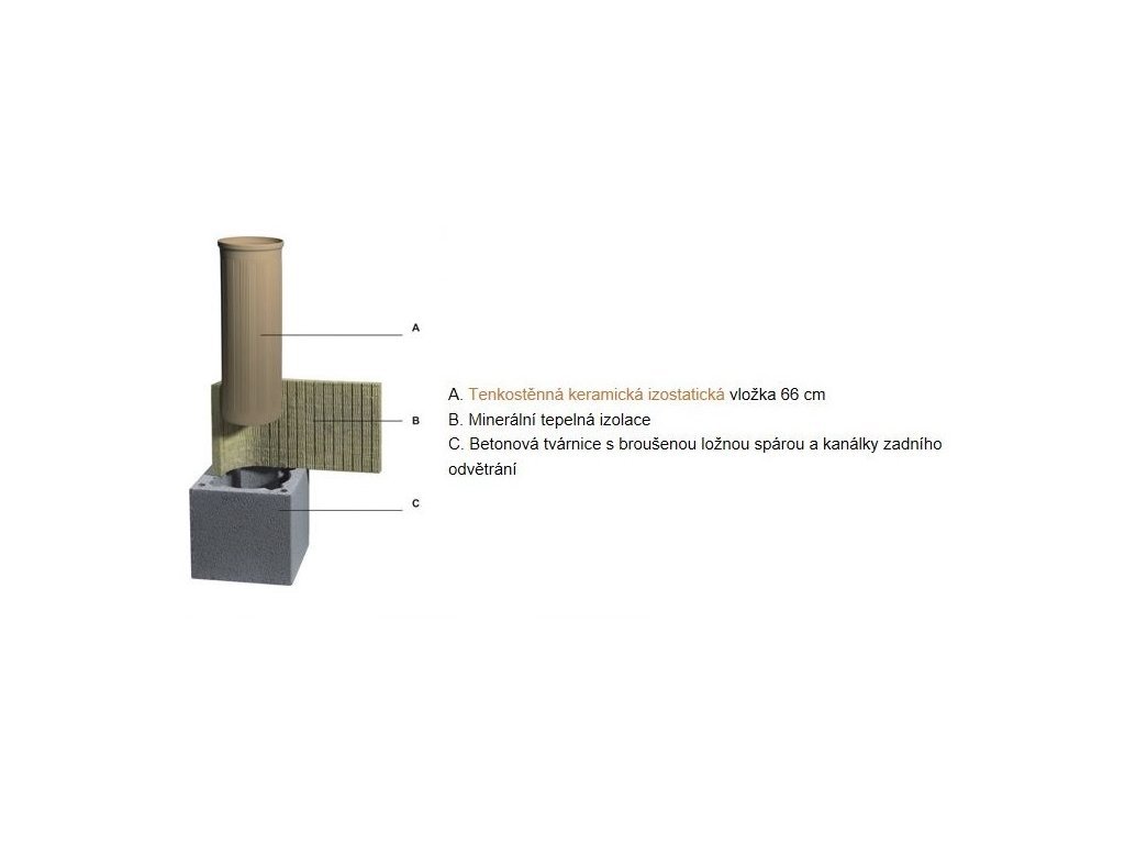 Třísložkový komínový systém se zadním odvětráním s novou tenkostěnnou keramickou vložkou má průměr průduchu 16 cm s odbočkou 90°. Slouží k odvodu spalin ze spotřebičů na pevná, plynná a kapalná paliva.